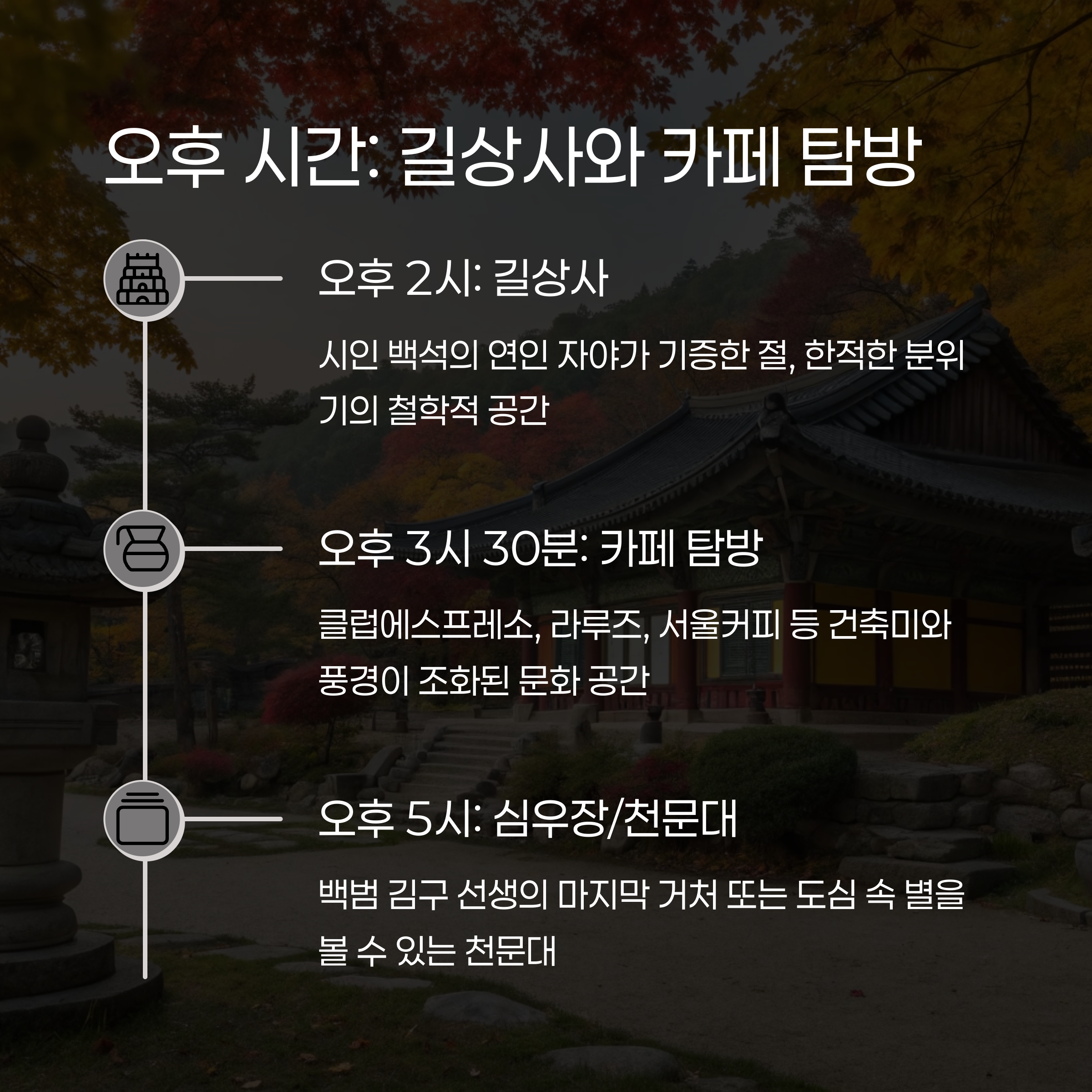 | 14:00 | 길상사·성곽길 | 산책, 문화 공간 |