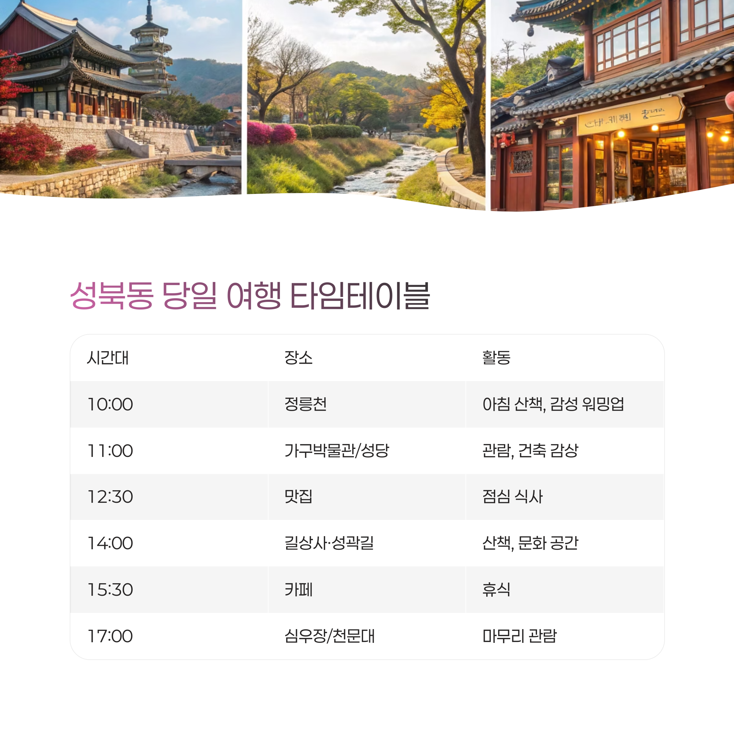 이번 글에서는 하루만으로도 성북동을 충분히 즐길 수 있는 알짜 코스를