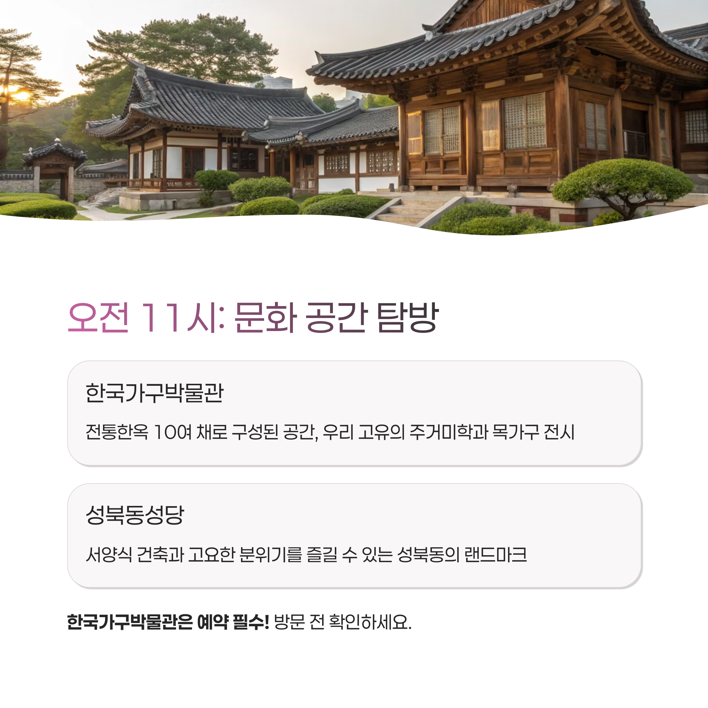 오전 11시: 한국가구박물관 또는 성북동성당 관람