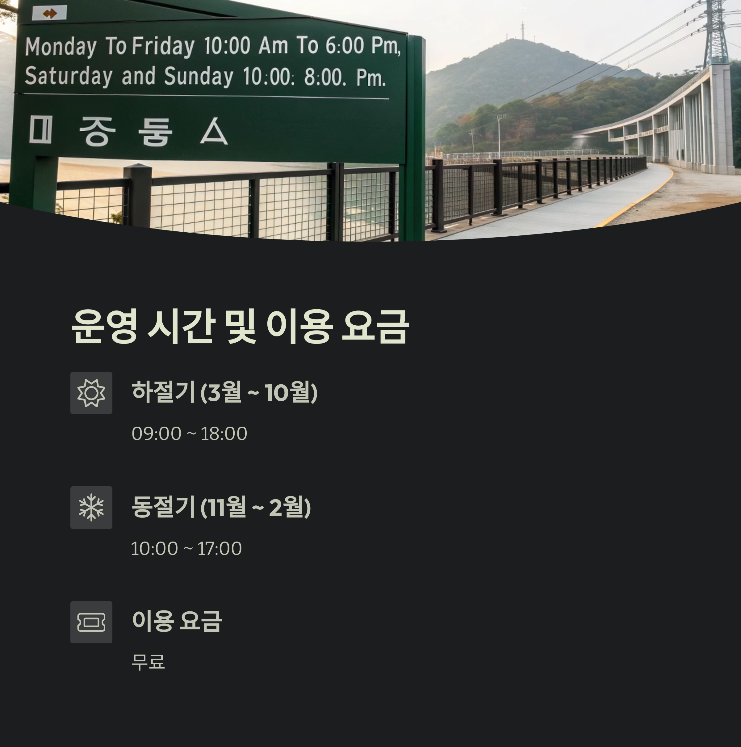 - 운영 시간: 하절기 09:00~18:00, 동절기 10:00~17:00 (무료)