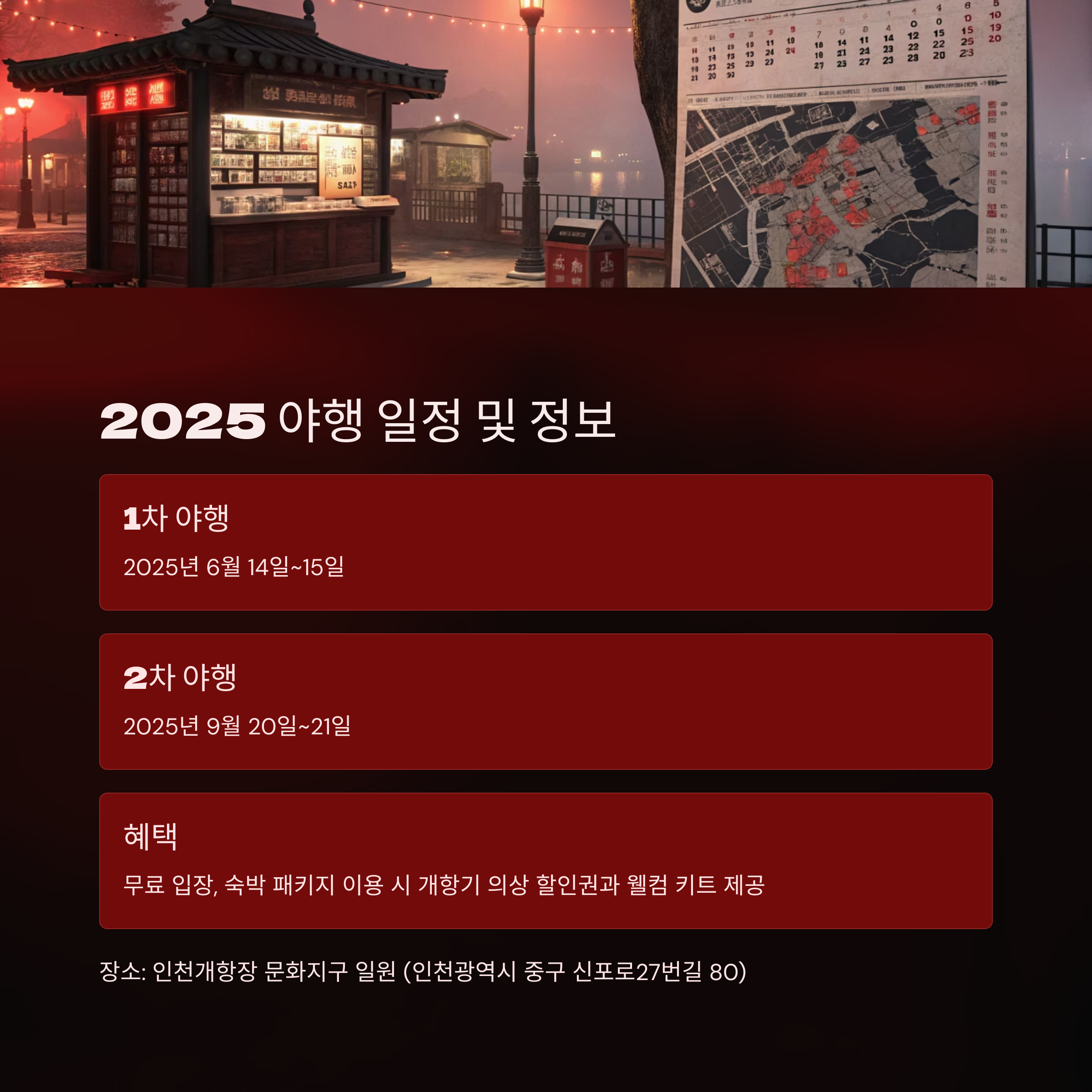- 1차 야행 기간: 2025년 6월 14일 (토) ~ 6월 15일 (일)