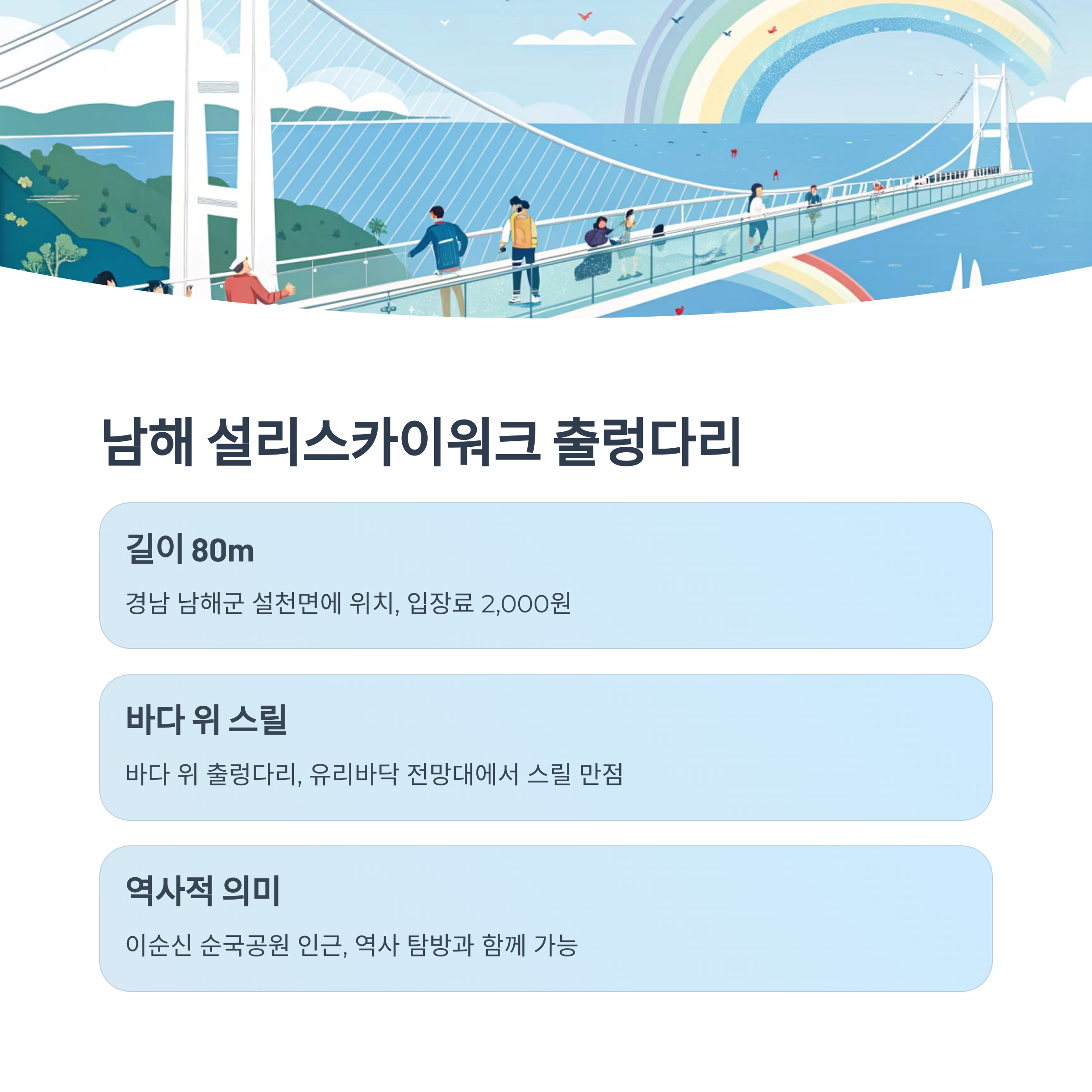 - 가볼만한 곳: 설리스카이워크, 남해대교, 이순신 순국공원