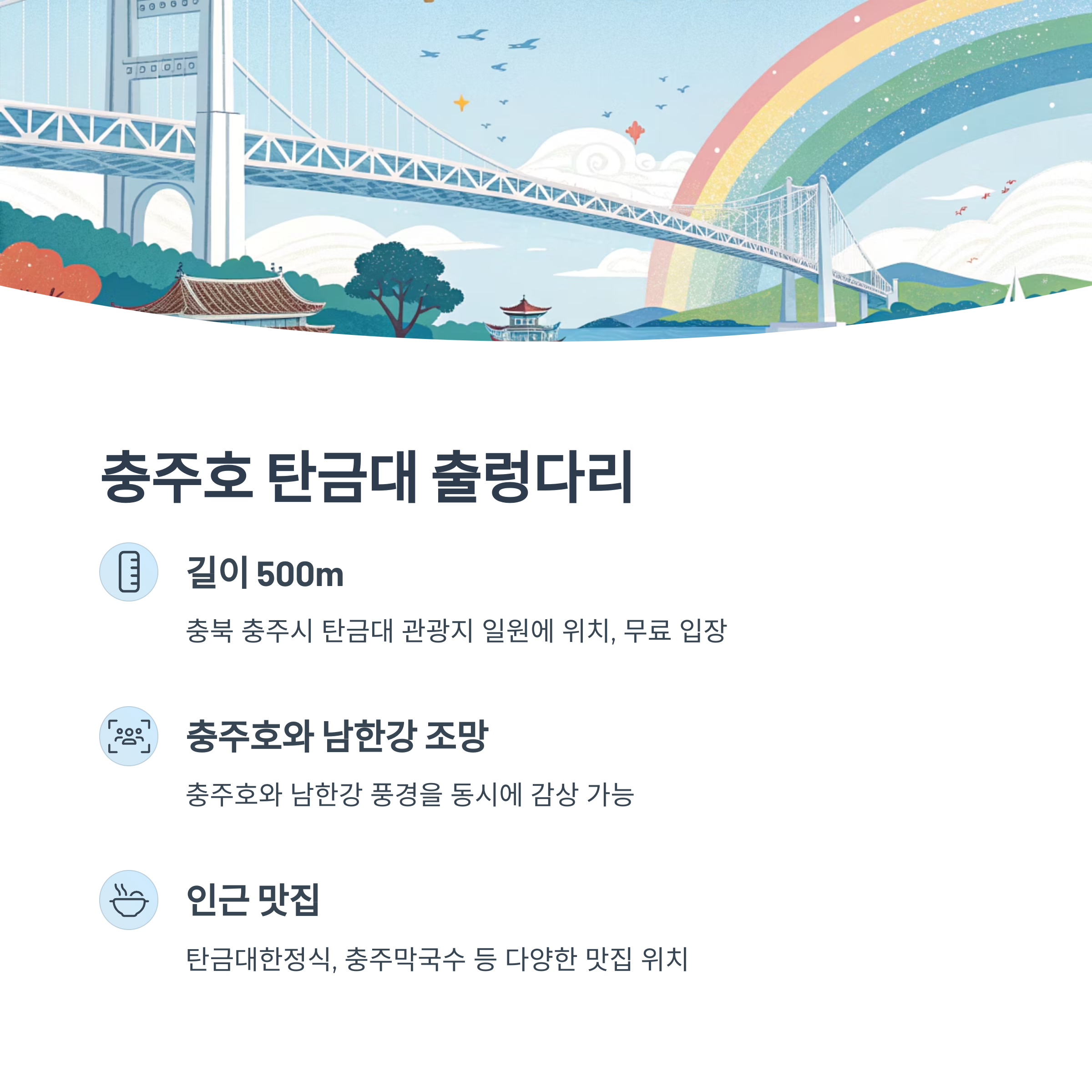 - 인기 및 후기: 충주호와 남한강 풍경을 동시에 볼 수 있어 가족 나들이, 데이트 코스로 인기