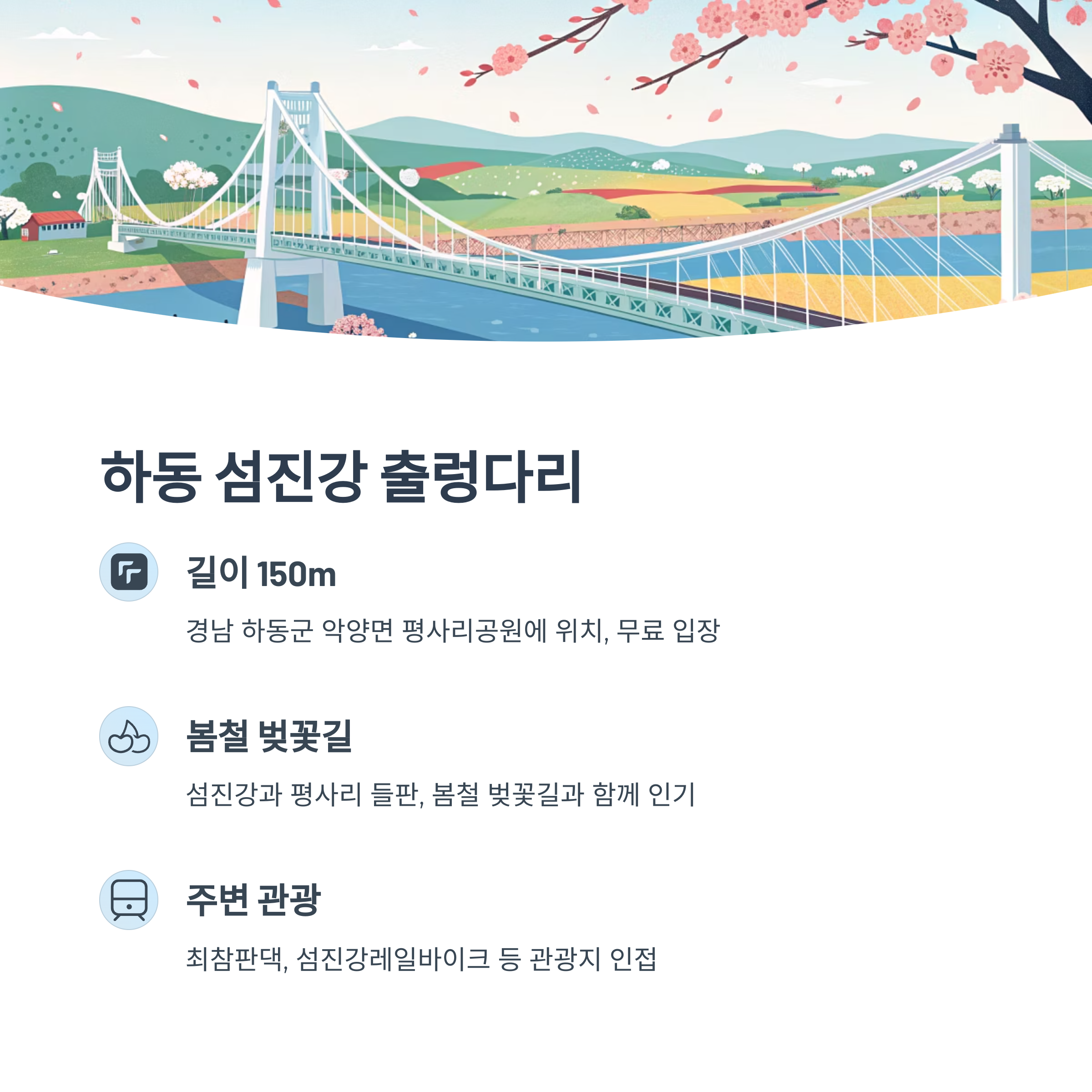 - 인기 및 후기: 섬진강과 평사리 들판이 어우러진 풍경, 봄철 벚꽃길과 함께 인기