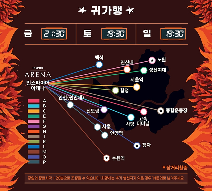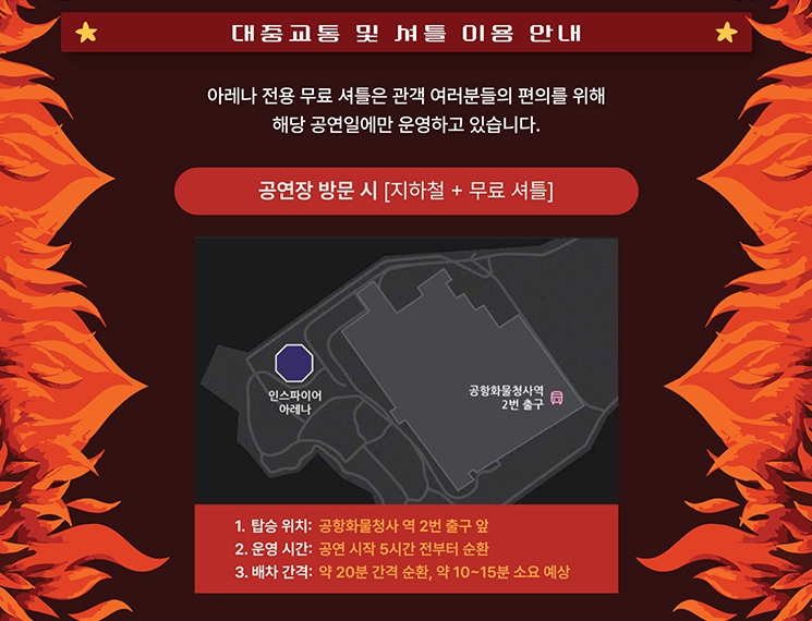 - 서울 시내~아레나 이동 시간 약 1시간 30분~2시간, 셔틀버스 확대 예정