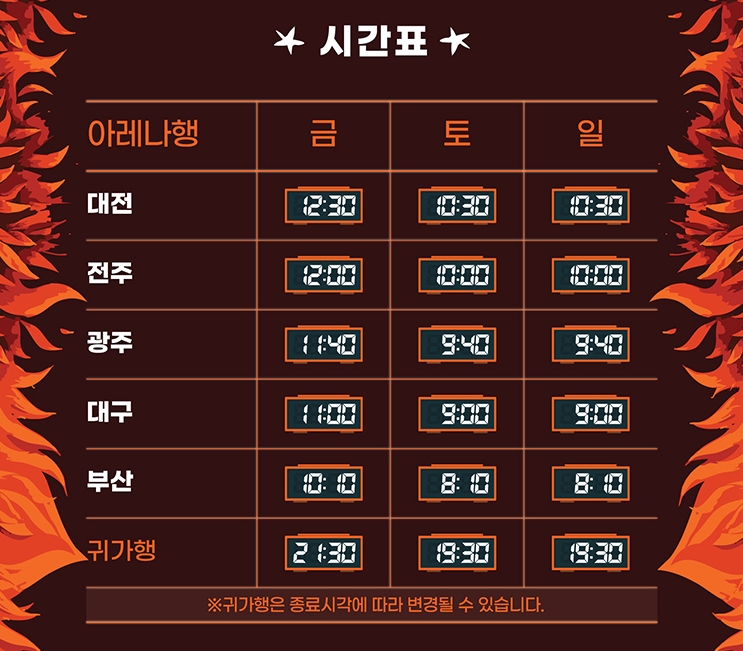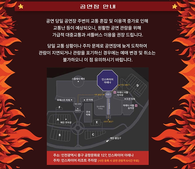 - 아레나 공식 홈페이지 및 SNS, 인터파크 티켓 공지사항을 통해 실시간 정보 확인 권장