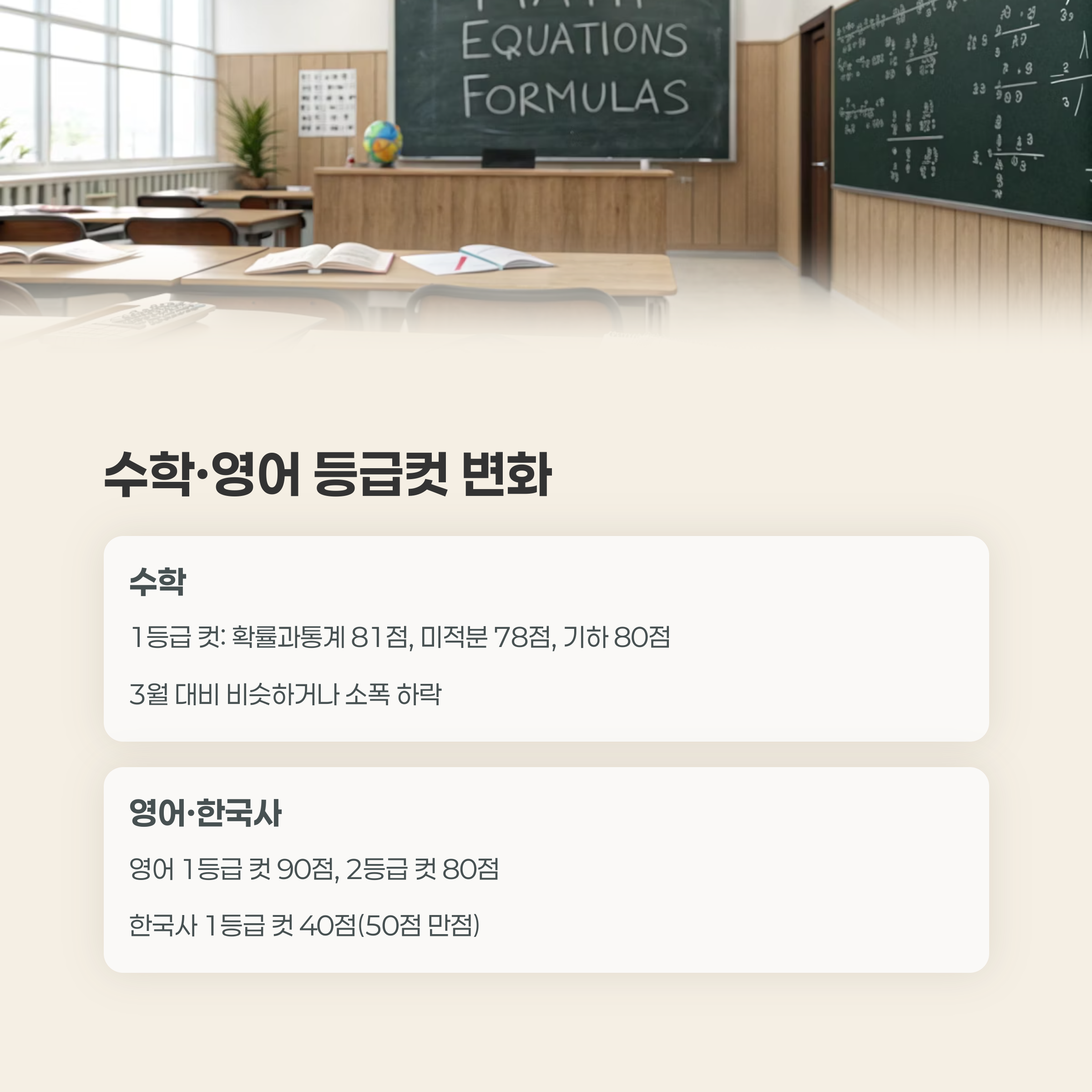 - 영어: 1등급 컷 90점, 2등급 컷 80점 등 예년과 비슷한 수준.
