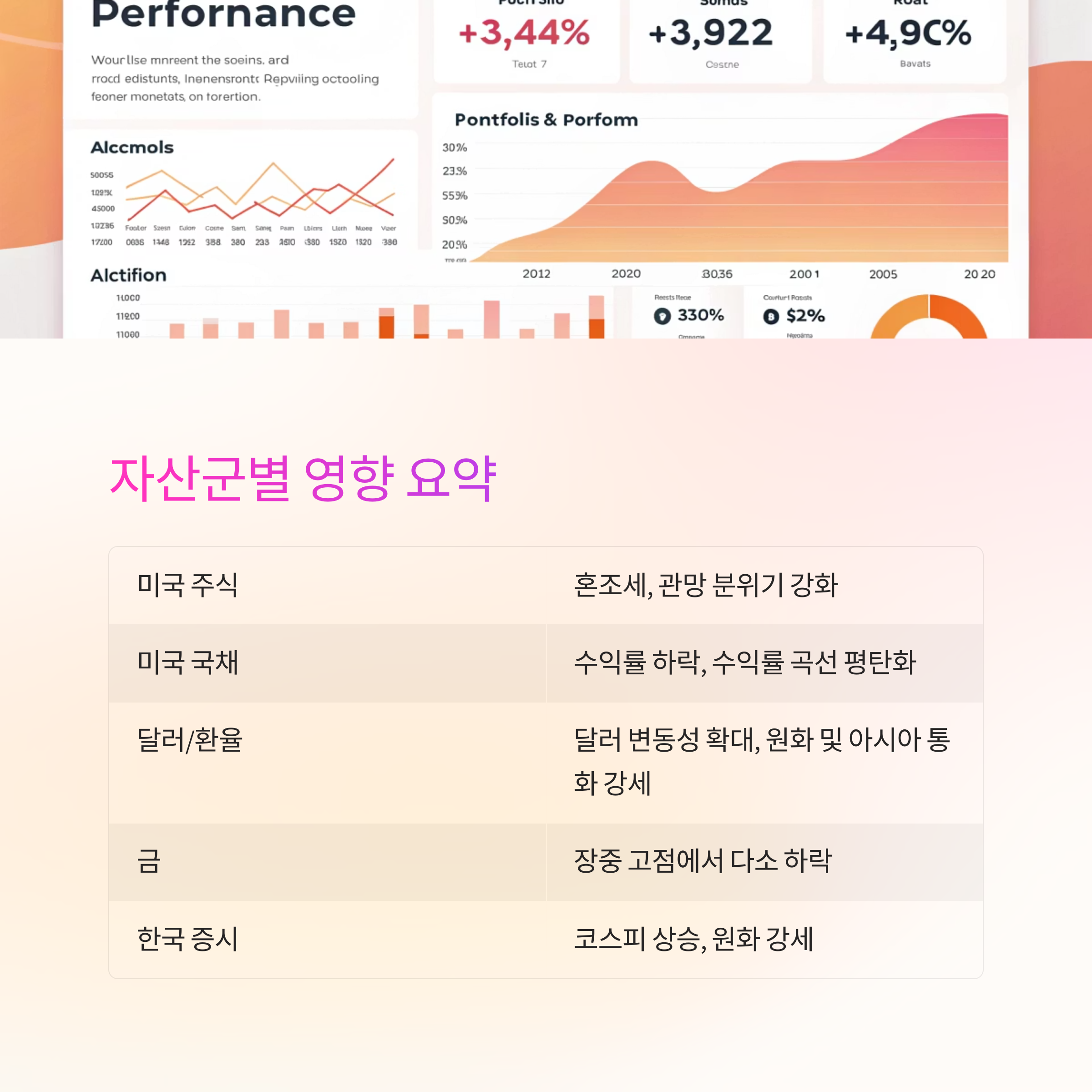 | 달러/환율 | 달러 가치 변동성 확대, 원화 강세, 아시아 통화 전반 강세 |