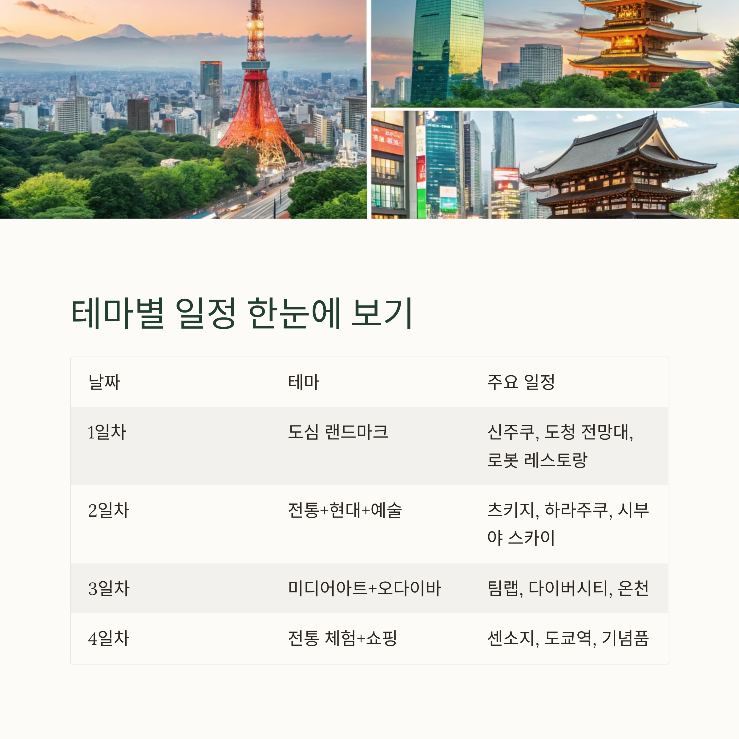 3박 4일 일본(도쿄 중심) 여행: 최신 트렌드 반영 테마별 완벽 일정표