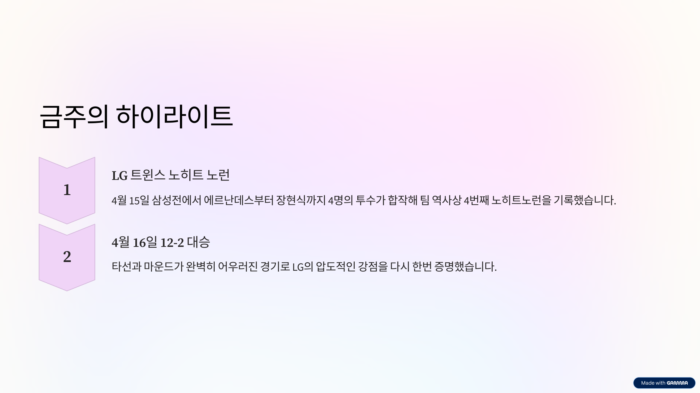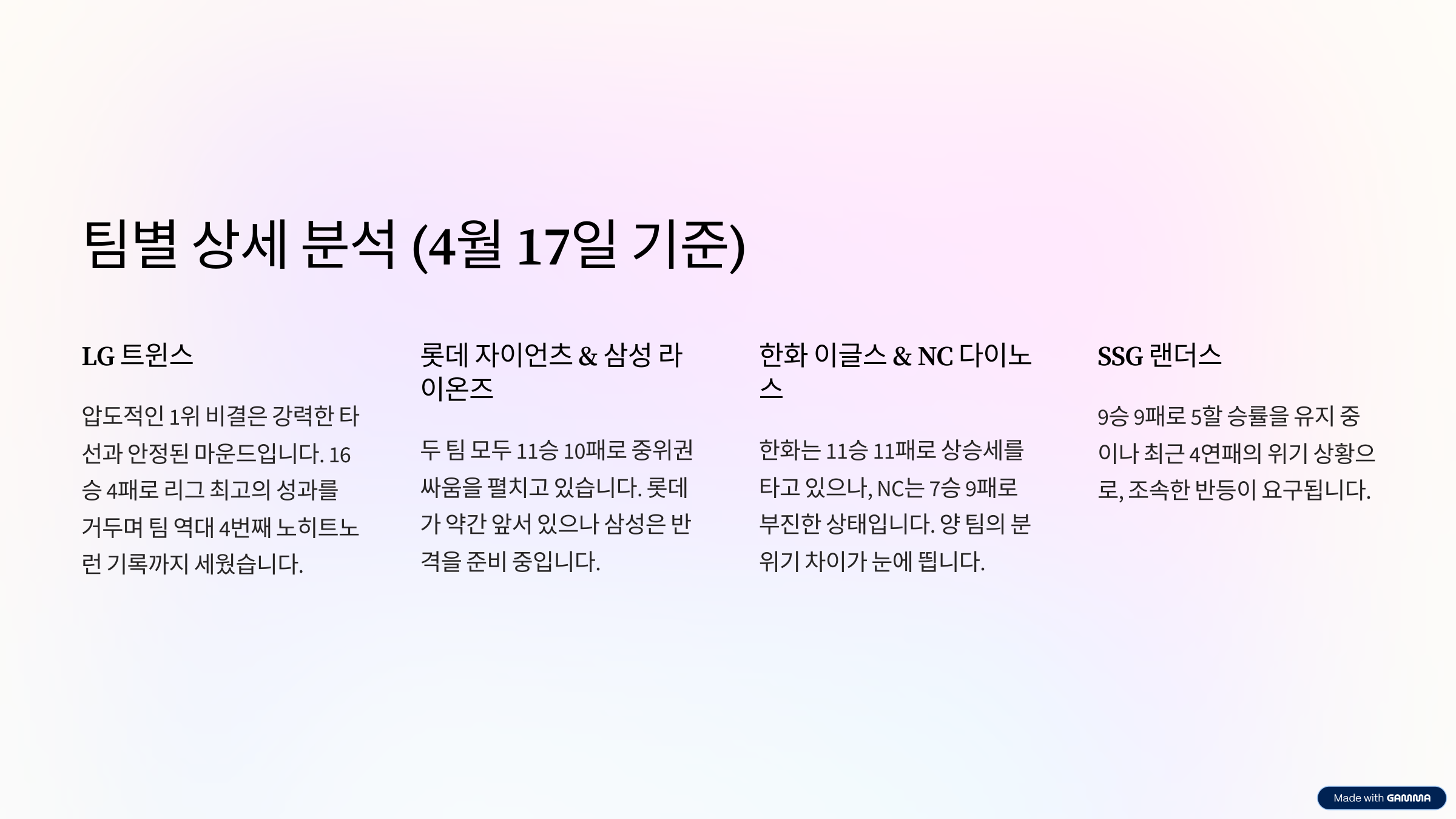 ④ LG vs SSG — “독주 vs 반등, 분위기 극과 극”