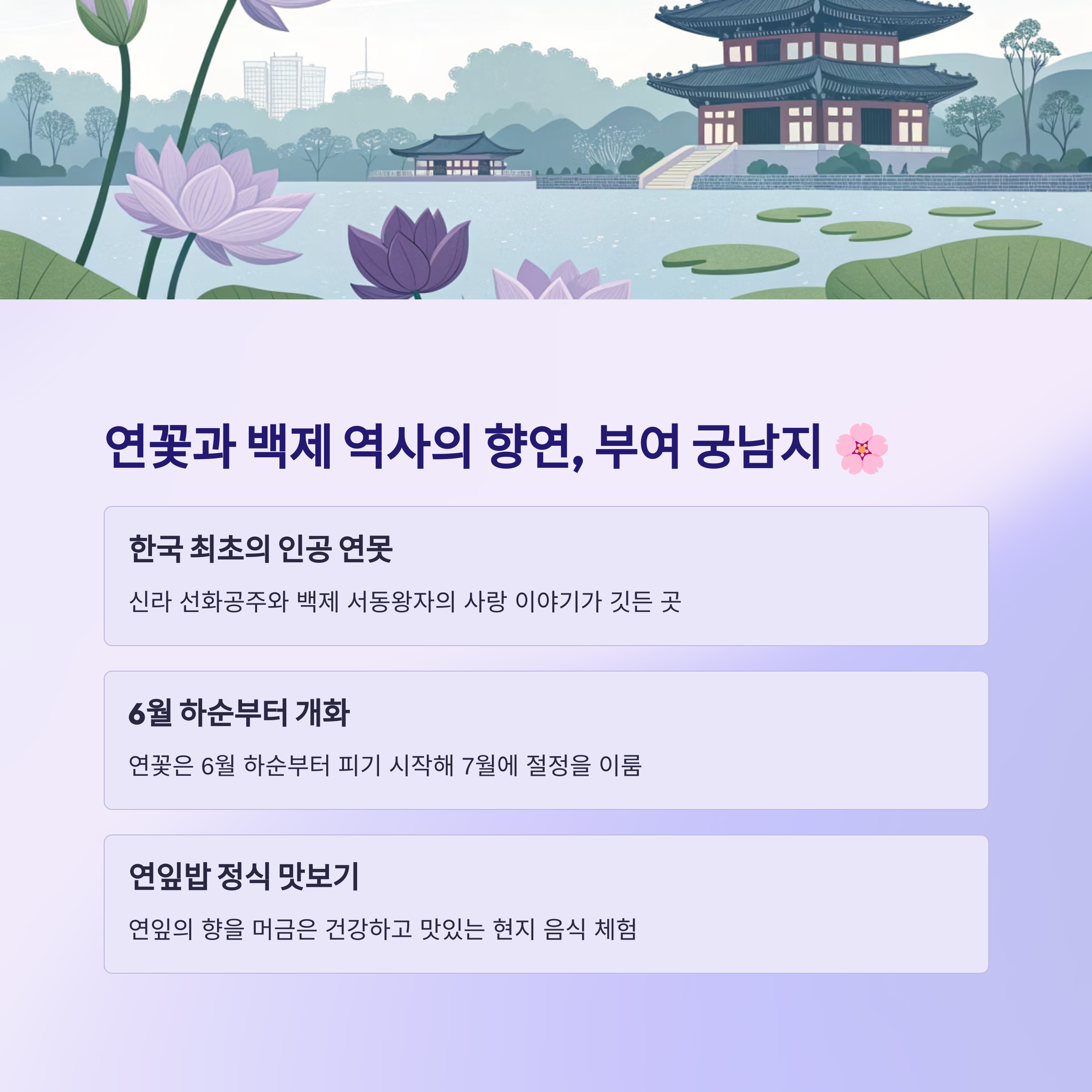 3. 부여 궁남지: 연꽃과 백제 역사의 향연 🌸