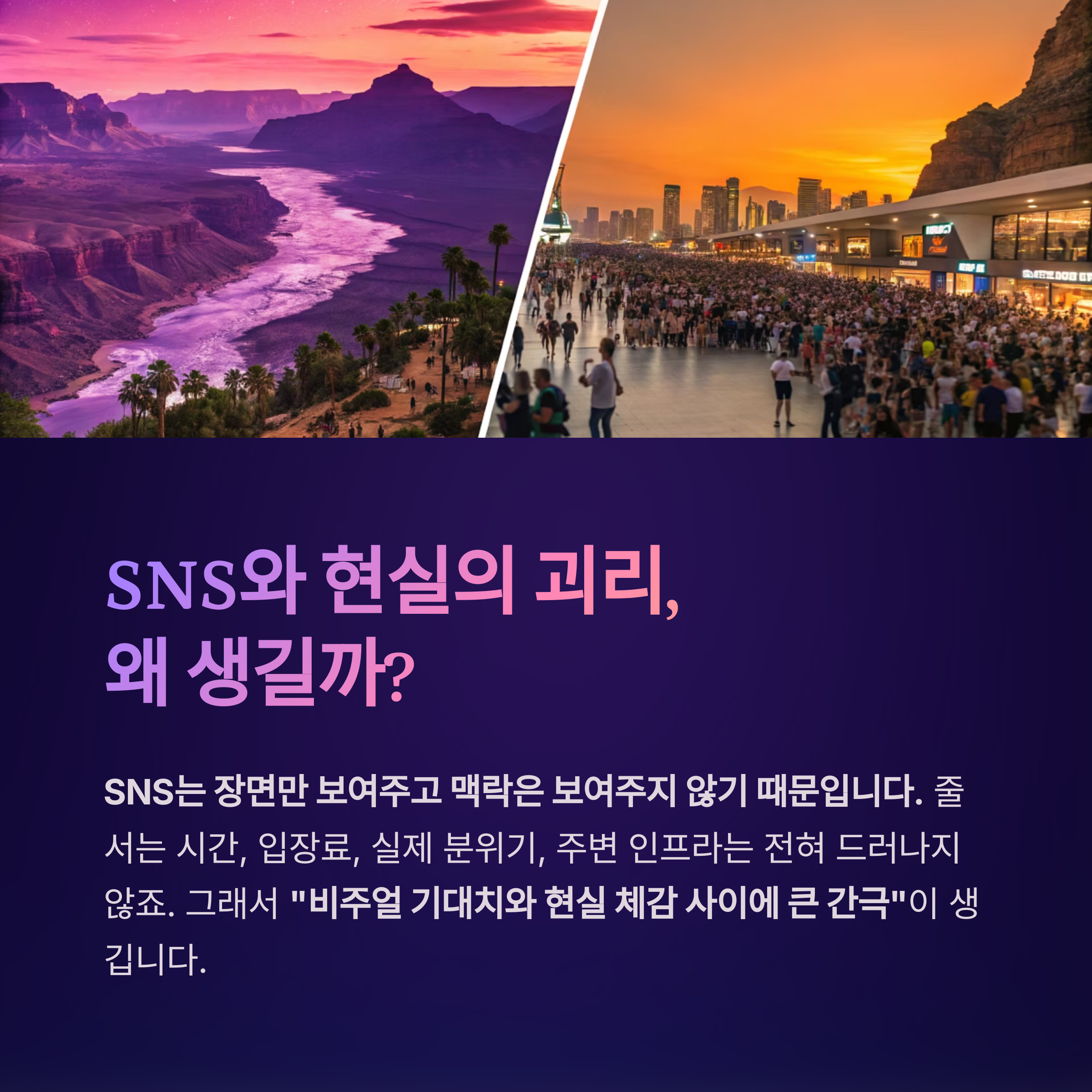 하지만 실제로 방문했을 때의 체감 경험과 비용, 혼잡도, 만족도는 SNS 속 이미지와 다를 수 있습니다.