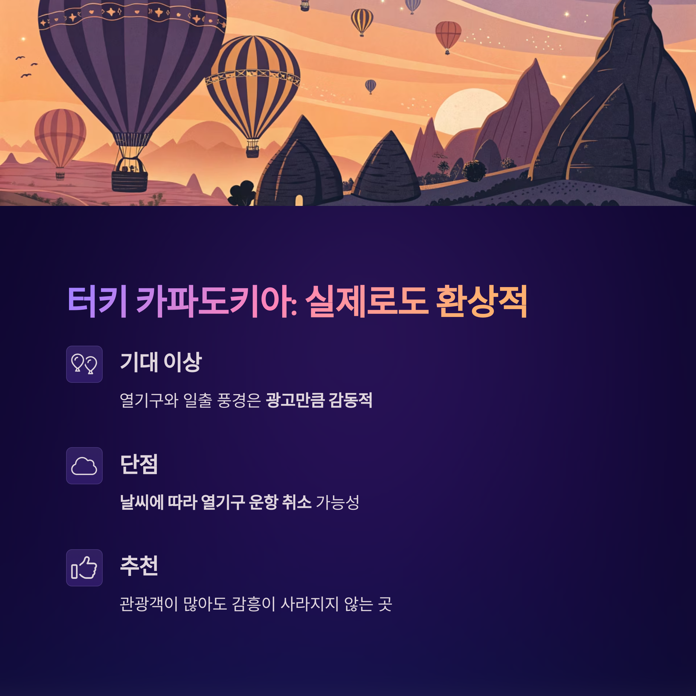 | 카파도키아 | 매우 높음 | 매우 높음 | 이틀 이상 체류 추천 |